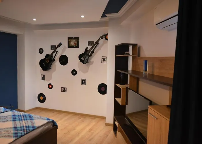 M@D Music Apartment lägenhet i Timişoara erbjuder rum med arbetsbord, plattskärms-TV med satellitkanaler och brandvarnare. Det finns separat toalett, badkar och dusch för din bekvämlighet.